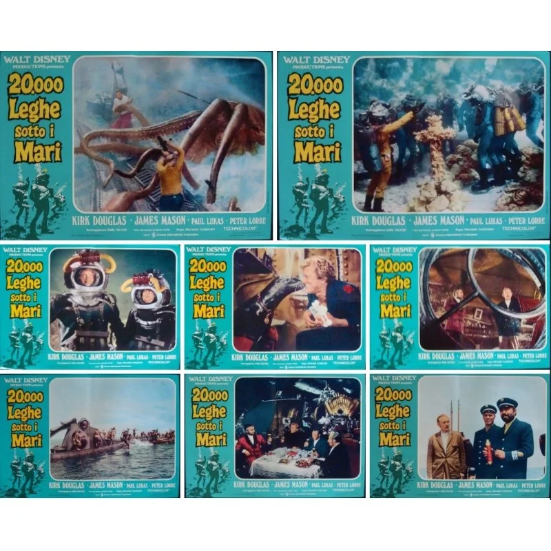 Complete set of 8 posters for the 1973 Italian rerelease of the Walt Disney classic adapted from Jules Verne's novel