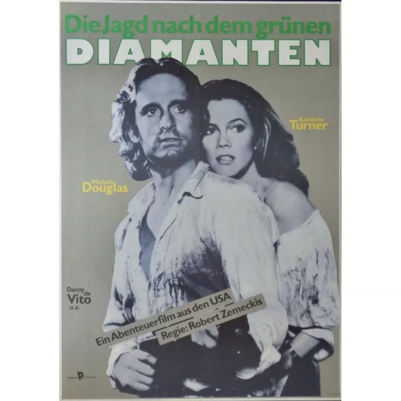 Original East German poster for Michael Douglas and Kathleen Turner's 1984 romantic action comedy