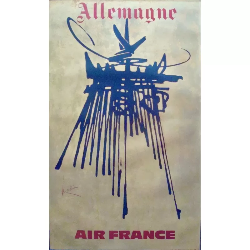 Vintage 1967 Air France poster advertising flights to Germany designed by abstract painter Georges Mathieu