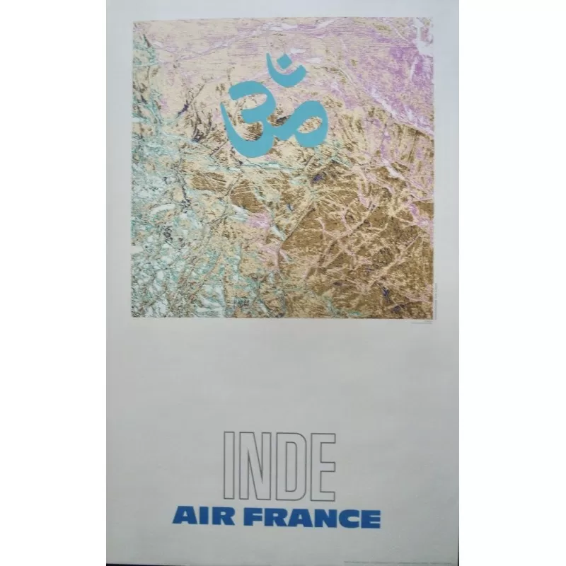 Vintage 1971 Air France poster advertising flights to India designed by painter Raymond Pages