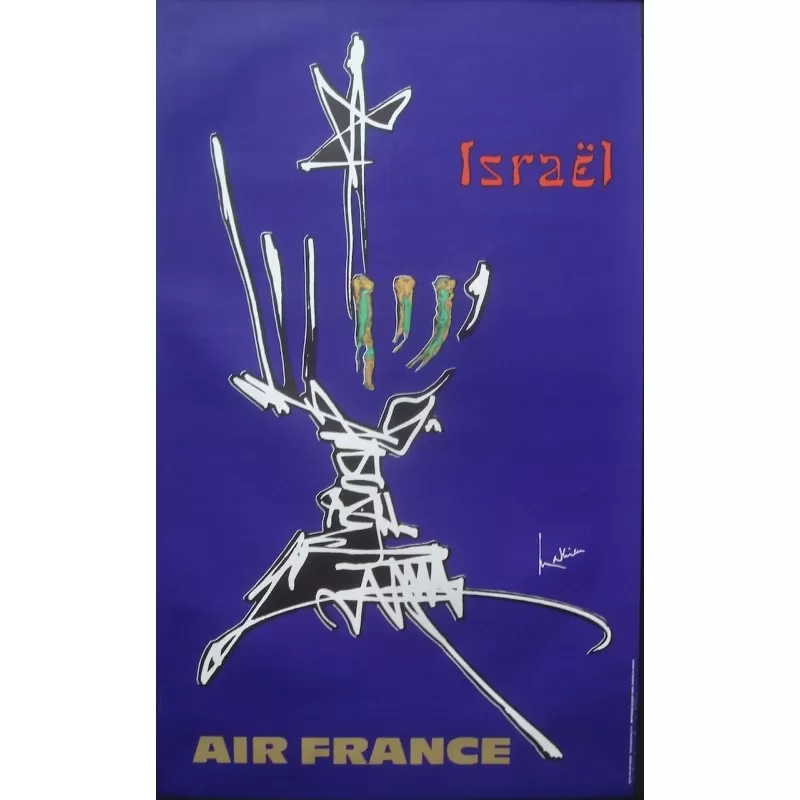 Vintage 1967 Air France poster advertising flights to Israel designed by abstract painter Georges Mathieu