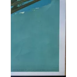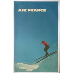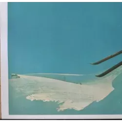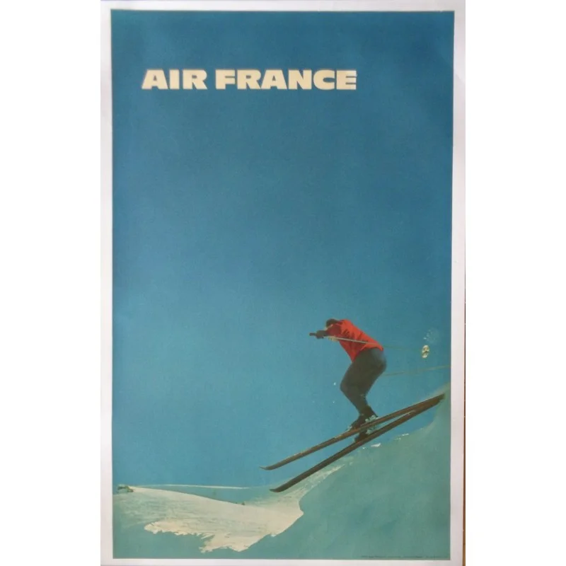 Original 1966 Air France poster advertising skiing in the French Alps. Poster is linen backed
