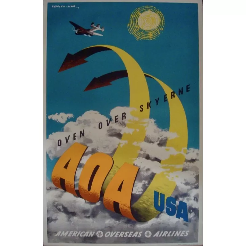 American Overseas Airlines AOA Above The Clouds vintage 1948 travel poster