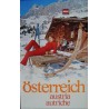 Vintage 1972 Austrian Tourism poster advertising Winter skiing holidays featuring a gorgeous red ski suit wearing model