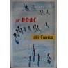 Colorful vintage BOAC Airlines 1962 travel poster advertising flights to the French Alps ski slopes. Poster is linen backed