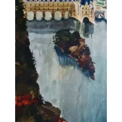 Very rare vintage 1947 French Travel poster advertising Tourism in the Loire Valley featuring an aerial paiting of Chateau de Chenonceau by Robert Abel. Poster is linen backed