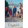 Rare vintage 1960 French tourism poster featuring typcal Parisian kids (Titis) playing in front of Notre-Dame de Paris