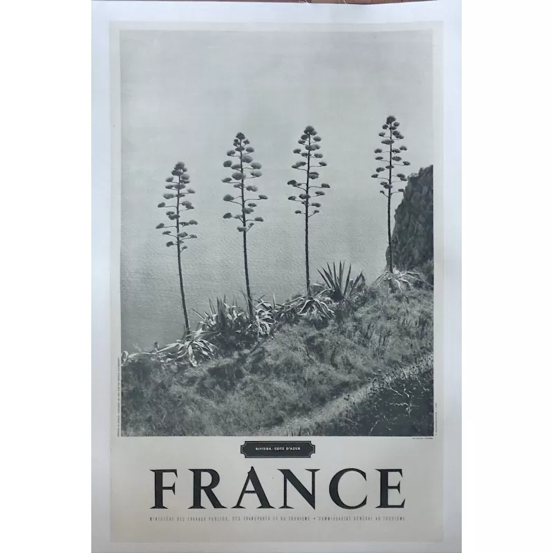 Original 1958 French tourism poster advertising the Riviera Cote d'Azur. Poster is linen backed