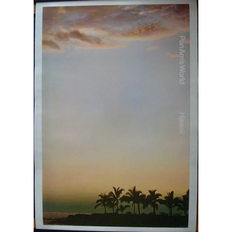 Ultra rare vintage Pan American Airlines poster designed by Ivan Chermayeff advertising flights to Hawaii with a superb sunset image. Poster is linen backed