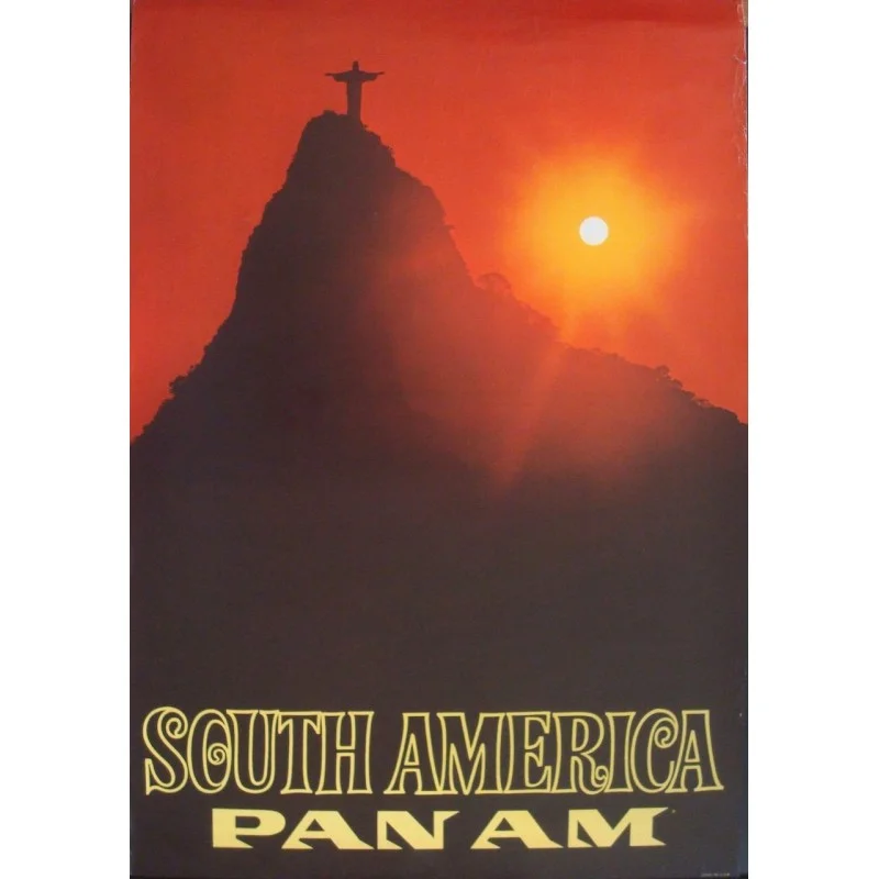 Pan Am Airways Airlines South America vintage 1969 travel poster
