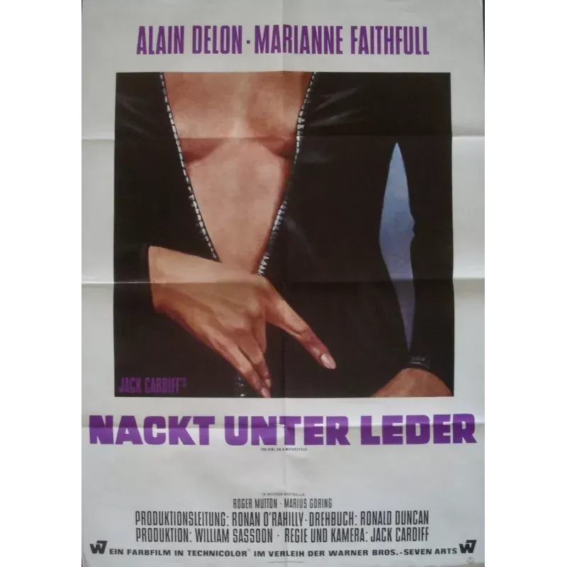 Original German poster for Alain Delon and Marianne Faithfull's 1968 erotic biker movie