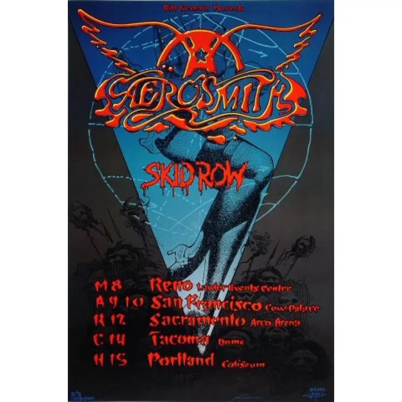 Rare vintage concert poster by Rick Griffin for Aerosmith's 1990 US West Coast dates