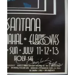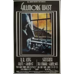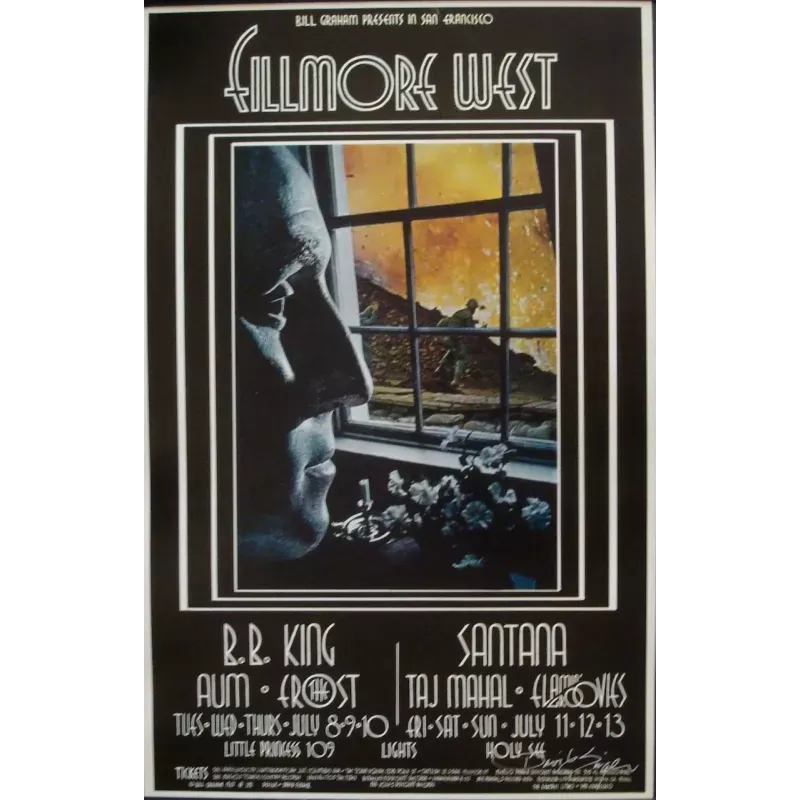 Vintage concert poster designed and hand signed by David Singer for Blues legend BB King and Santana's 1969 Fillmore West shows