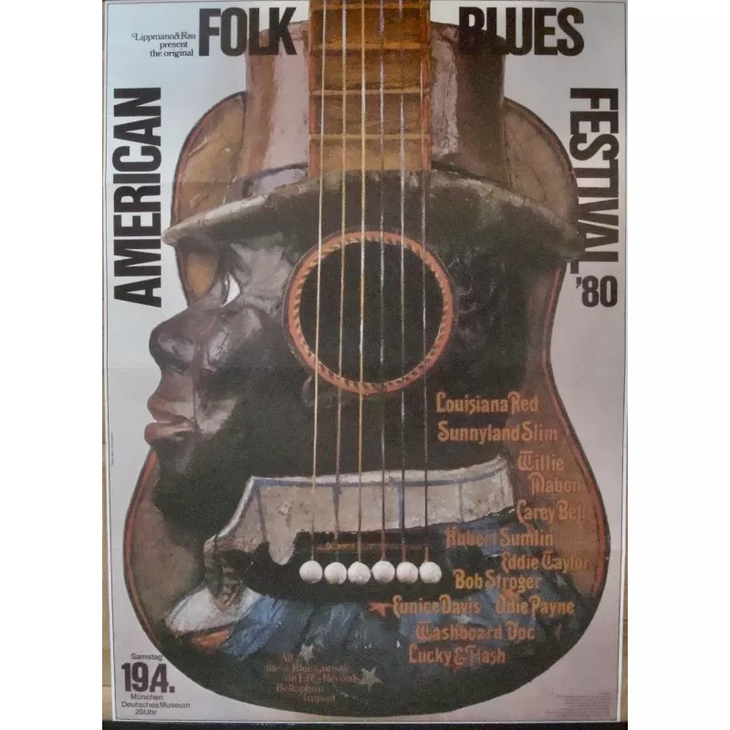 American Folk And Blues 1980 festival concert poster by Gunther Kieser