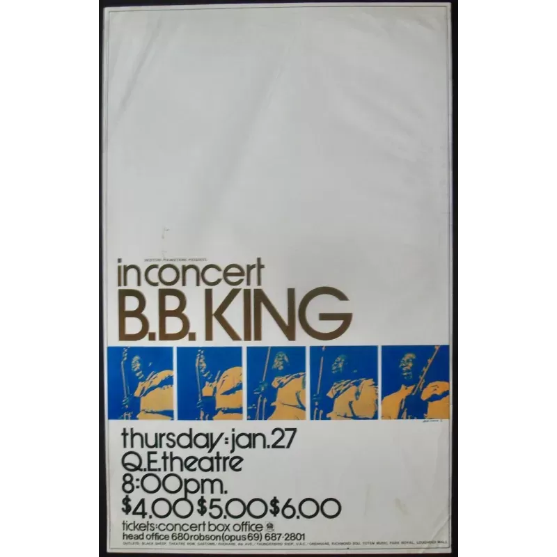 Uktra rare vintage first print concert poster advertising B.B. King's 1972 Vancouver show. Art by Bob Masse