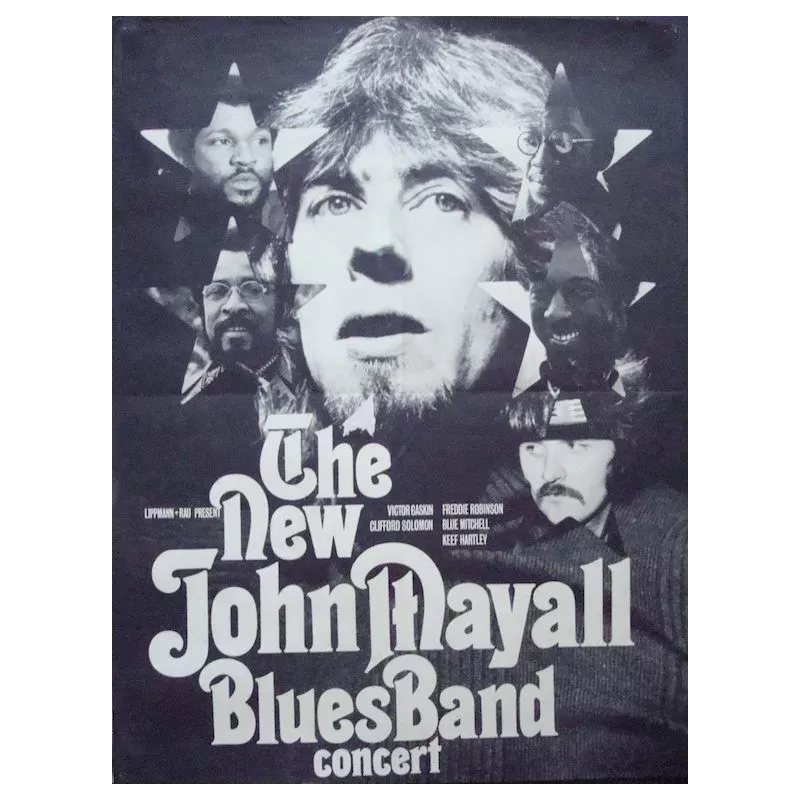 Generic concert poster designed by Gunther Kieser for John Mayall Blues Band 1972 German tour