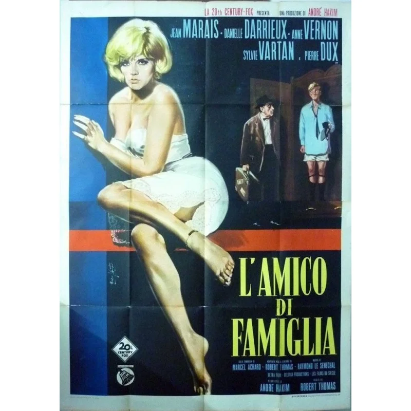 Very rare large 2 panel Italian posters with a gorgeous painting of Sylvie Vartan in the 1964 French comedy