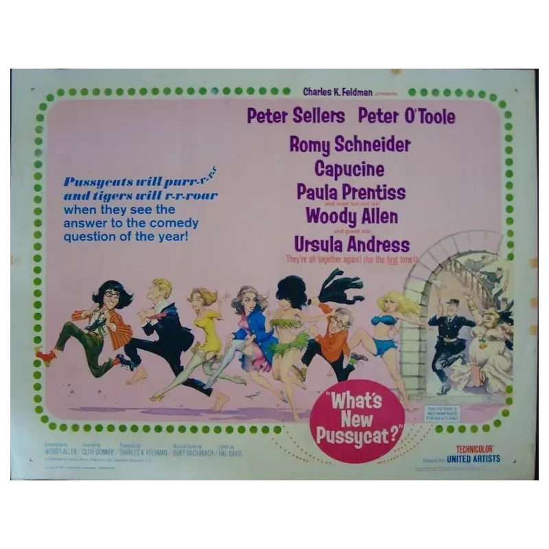 Rare Half sheet poster of the wacky comedy staring Peter Sellers, Peter O'Toole, Woody Allen, Ursula Andress and Romy Schneider with great Frank Frazetta art
