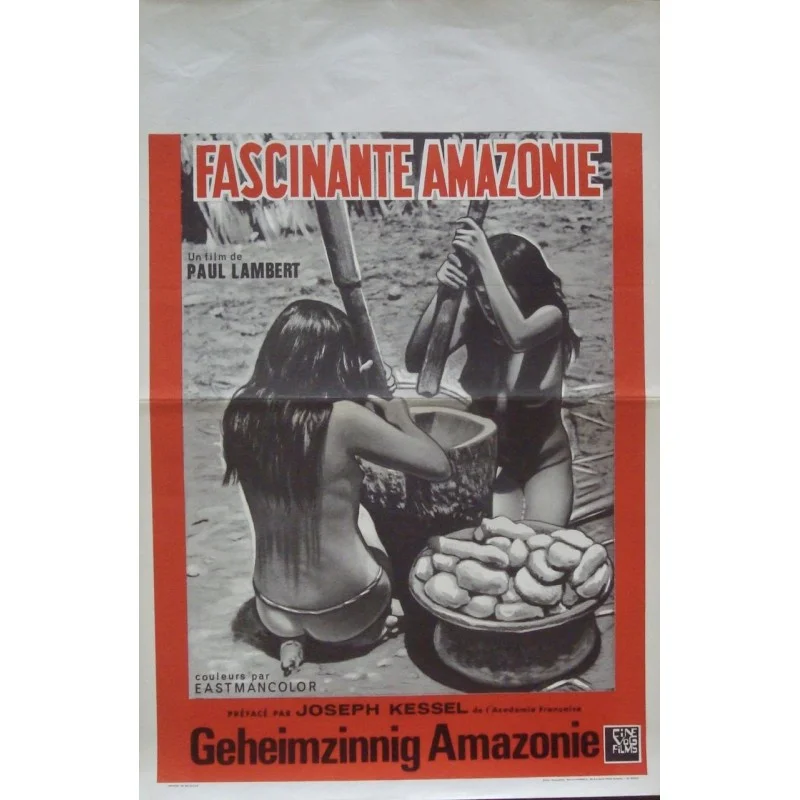 Rare original Belgian poster for the 1965 French documentary. Also known as Fascinante Amazonie