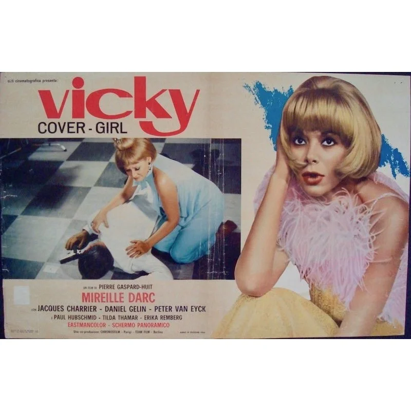 Colorful Italian poster with a great image of Mireille Darc from the 1966 French spy drama