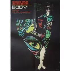 Rare Polish poster with stunning Art by Hibner for Richard Burton and Elizabeth Taylor's 1968 drama