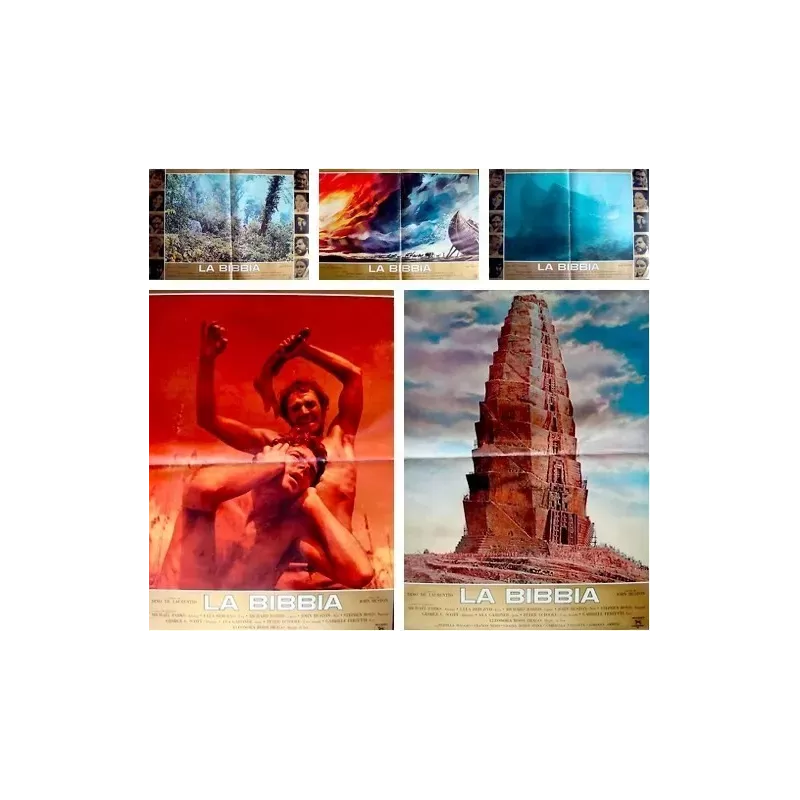 Complete set of 5 large italian posters designed for the 1966 bible epic directed by John Huston and starring Peter O'Toole and Ava Gardner