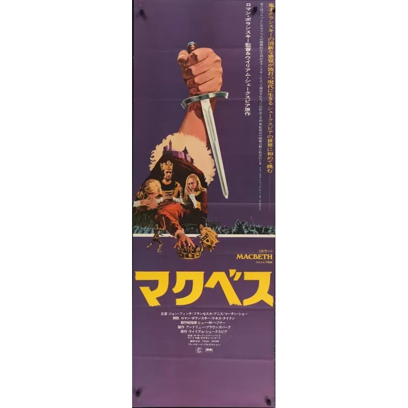 Large 2 panel movie poster of Roman Polanski's historical epic adapted from William Shakespeare
