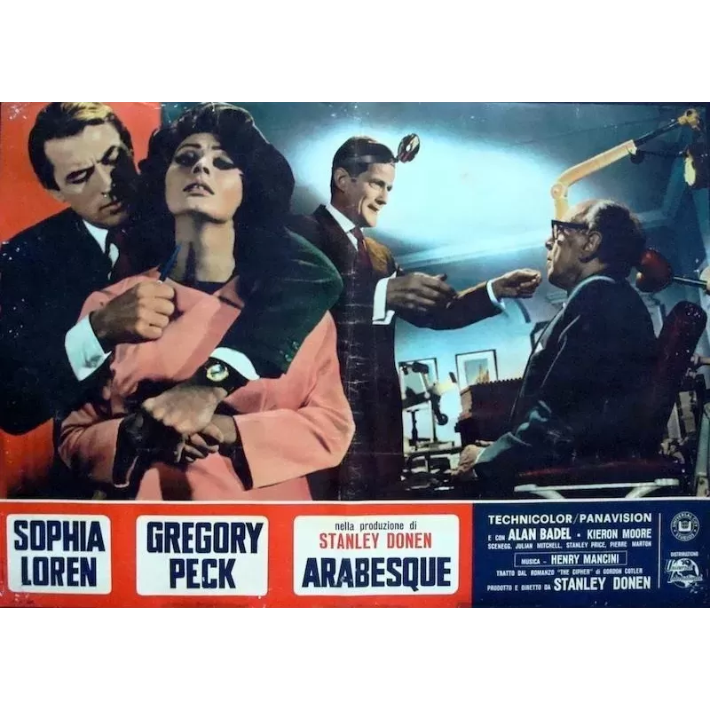 Vintage Italian poster for the 1966 spy comedy starring Gregory Peck and Sophia Loren