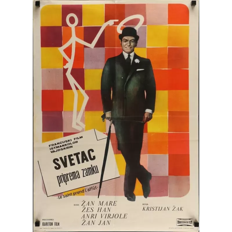 Colorful Yugoslavian poster for the 1966 French spy movie starring jean marais. Also known as The Saint Lies In Wait
