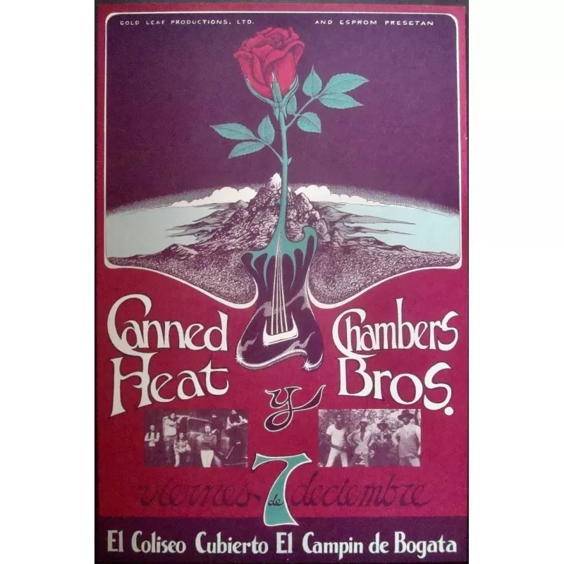 One of Gary Grimshaw's harder to find concert poster designed for Canned Heat's 1973 show in Colombia