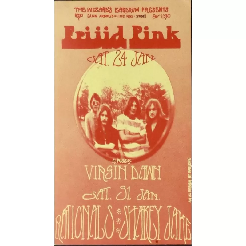 Rare original concert handbill for Frijid Pink's 1970 Michigan shows