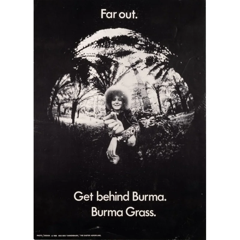 Burma Grass Far Out Get Behind Burma original 1969 head shop poster