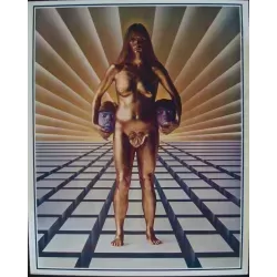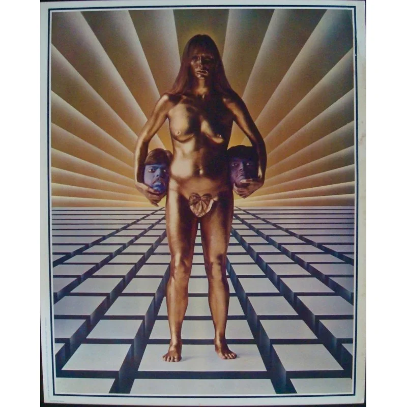 Very rare vintage 1969 Pandora head shop poster featuring a gold painted naked model. Design bu Don Getsug
