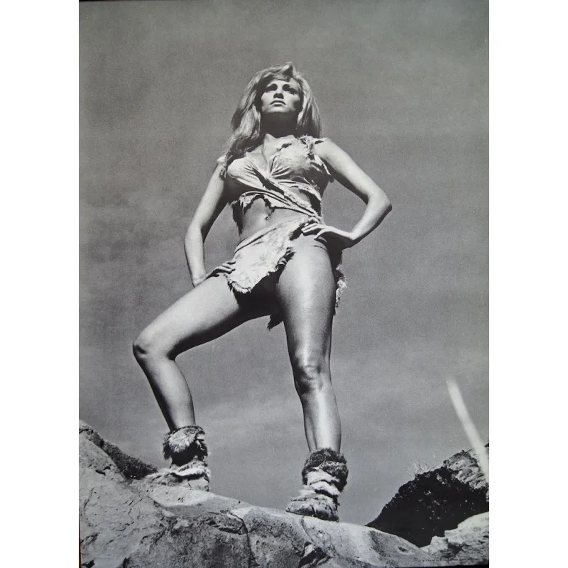 Rare 1971 Japanese commercial poster featuring bikini clad Raquel Welch in the 1966 Hammer fantasy movie