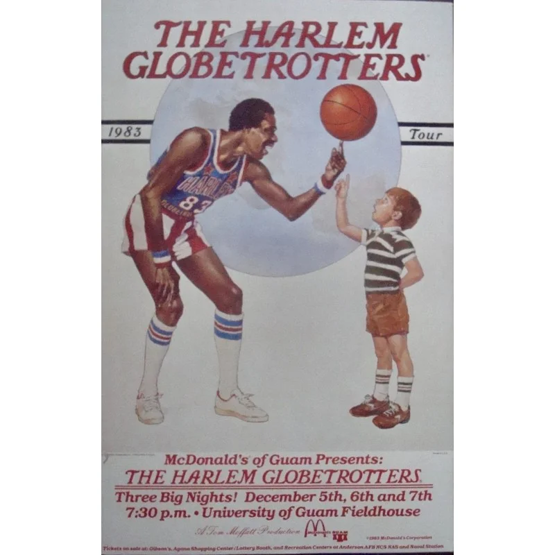 Vintage window card poster for the All-star Basketball team's 1983 exhibition in Gwam