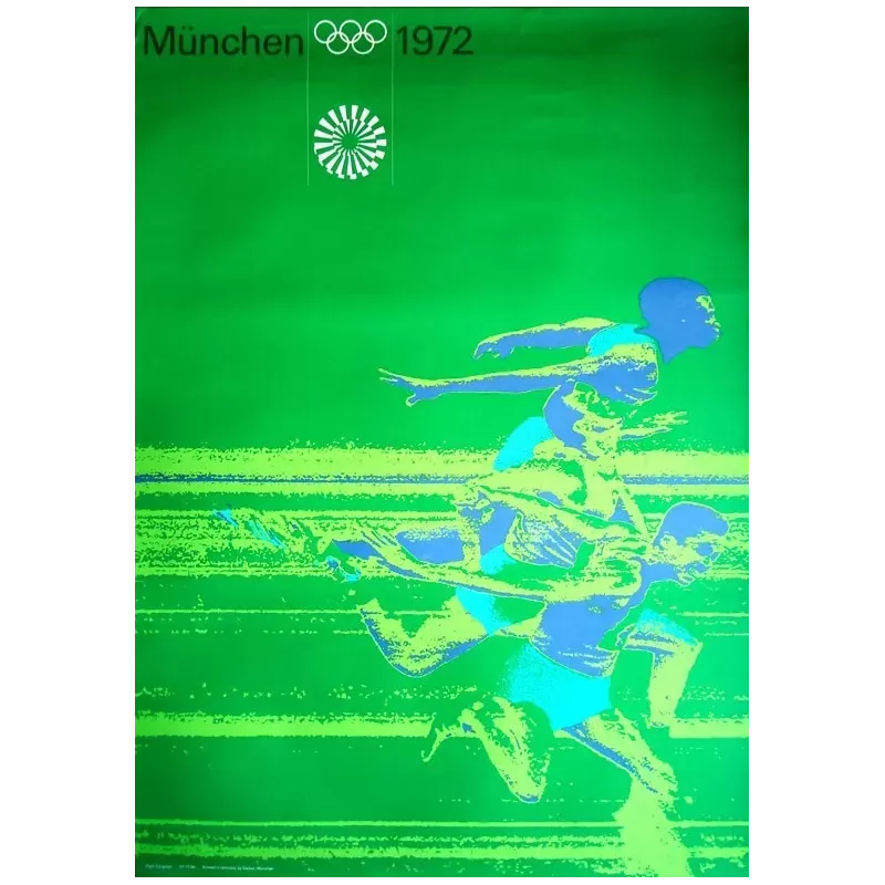 Large German poster designed by Otl Aicher part of what is probably the best Olympic games poster series of 24 posters. Sprint