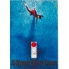 Sublime design testing the eye making us guess whether the agile lady is floating in space, swimming in pure blue water or actually figure skating.Very rare poster in pristine condition