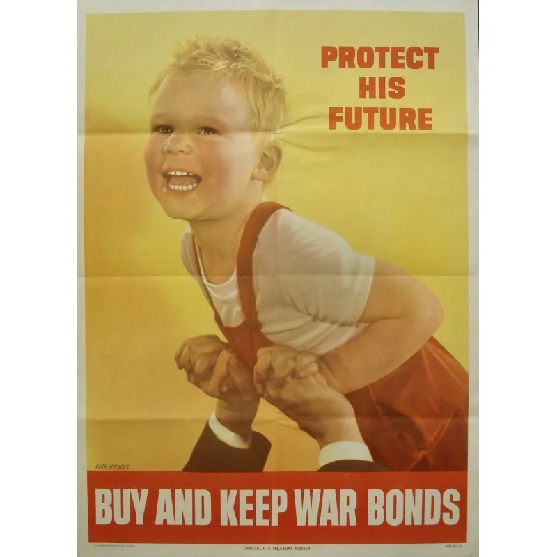 Buy And Keep War Bonds: Protect His Future vintage 1943 WW2 Propaganda poster