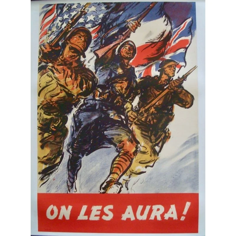 Very rare 1944 WW2 Propganda poster. Poster is already linen backed