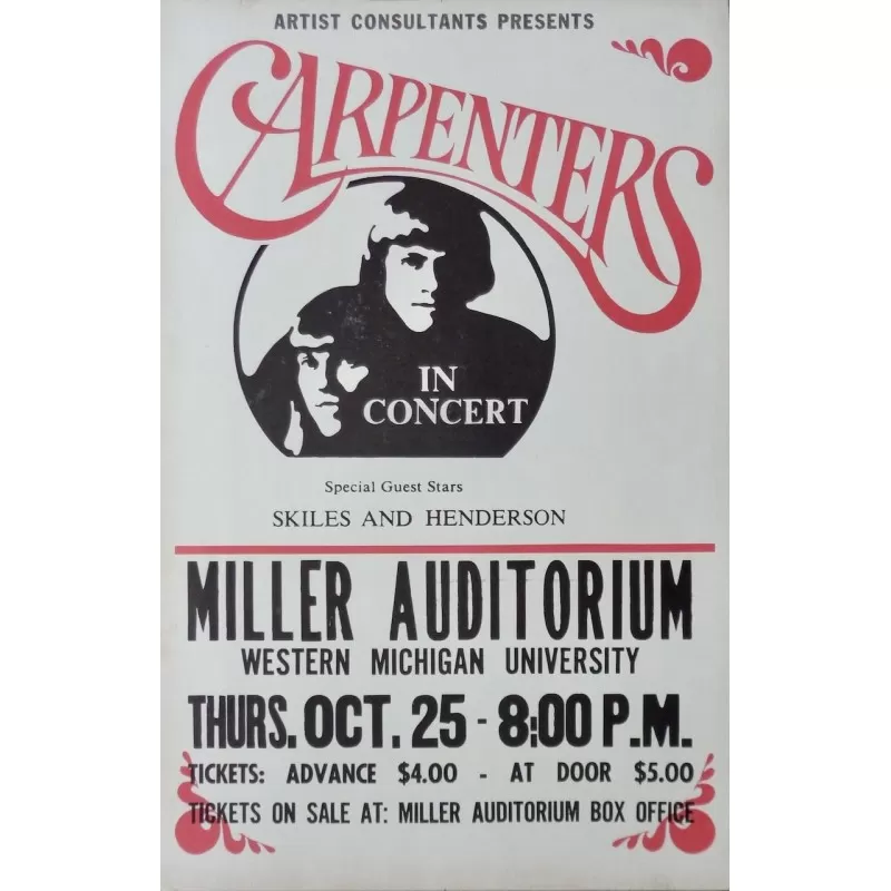 Very rare original concert poster for The Carpenters' 1973 Michigan show