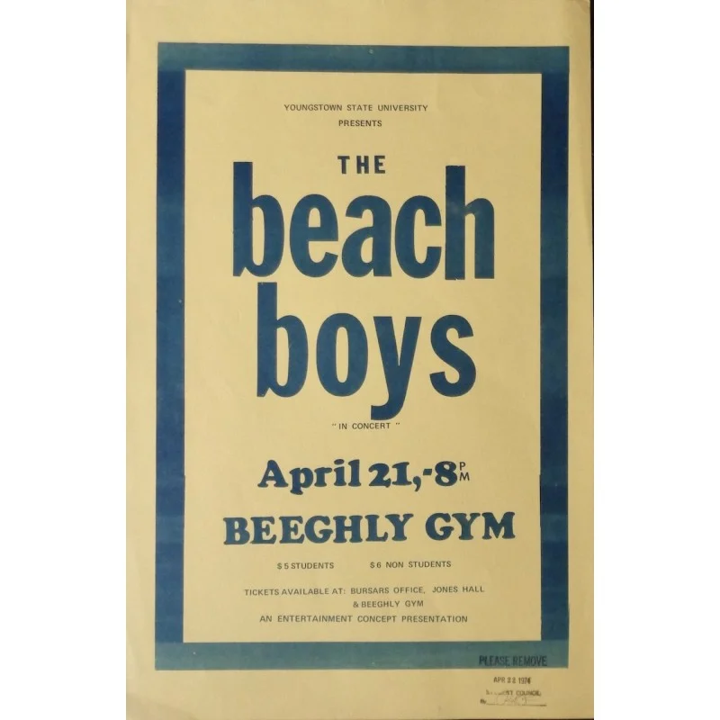Original concert poster for The Beach Boys' 1974 Youngstown show