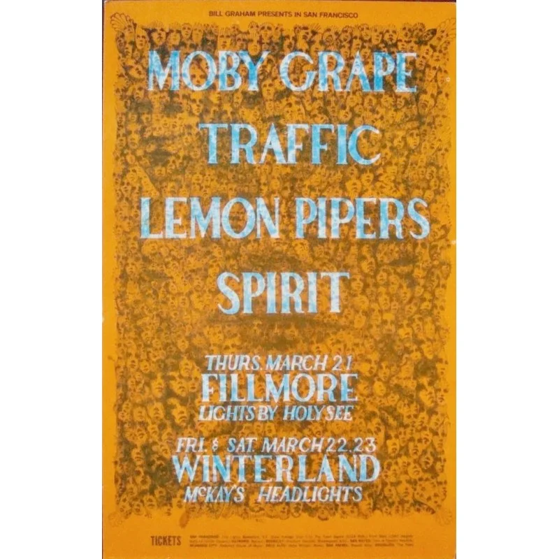 Vintage Fillmore postcard for Traffic's 1968 concerts at the Fillmore Auditorium