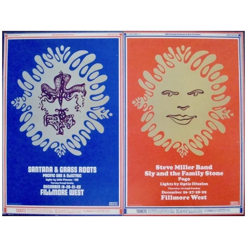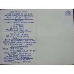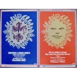 Vintage double-sided large postcard for the 1968 concerts at the Fillmore West featuring Santana, Sly And The Family Stone and Steve Miller Band