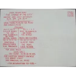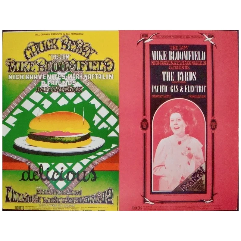 Vintage double-sided large postcard for the 1969 Fillmore West concerts featuring Chuck Berry and The Byrds