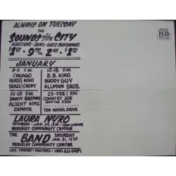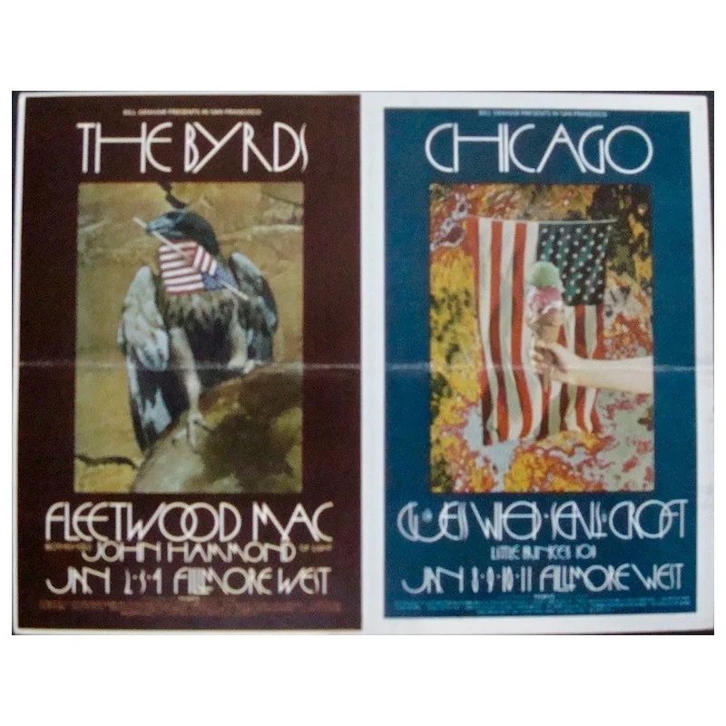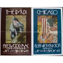Vintage double-sided large postcard for the 1970 Fillmore West concerts featuring The Byrds, Fleetwood Mac and Chicago