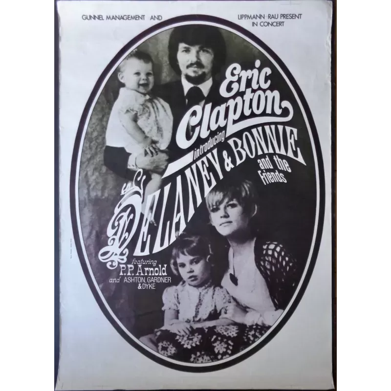 Rare original concert poster for Delaney And Bonnie's 1969 German Tour featuring Eric Clapton. Design by Gunther Kieser