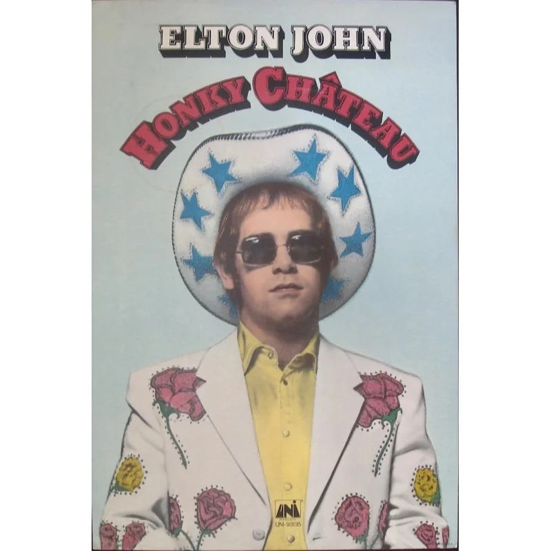 Very rare original promotional records standee for Honky Chateau featuring Elton John wearing his Nudie suit