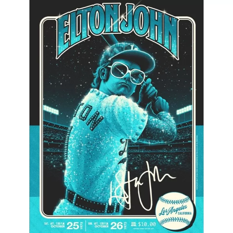 Superb limited edition print by Matt Ryan Tobin commemorating Elton John's 45th anniversary of his Los Angeles Dodgers Stadium's shows