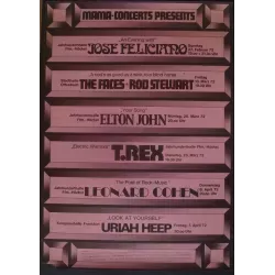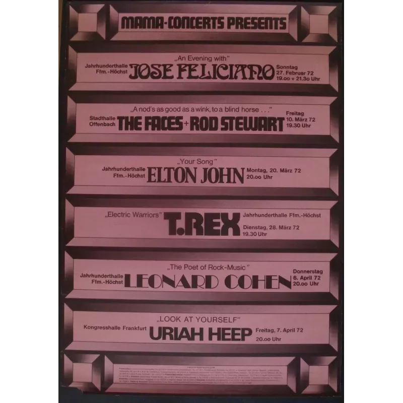 Elton John, The Faces, Leonard Cohen and T-Rex 1972 German concert poster