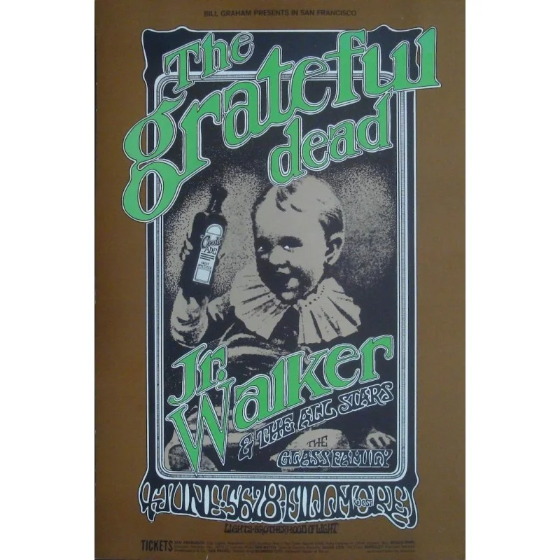 Vintage first print concert poster designed by Randy Tuten for The Grateful Dead's 1969 Fillmore West shows